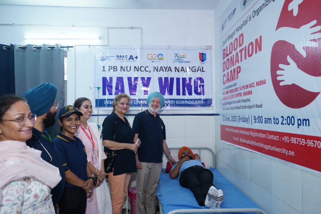 Desh Bhagat University, Mandi Gobindgarh, organized a blood donation camp at Desh Bhagat Hospital to honor the victims of the Ahmedabad air crash. This compassionate initiative, held under the university’s social responsibility mission, saw widespread participation from students, staff, and local villagers. NCC cadets from Navy Unit – 1PB NU, NCC Naya Nangal, and Army Unit – 14PB BN, NCC Nabha, also joined in the effort. The camp was inaugurated by Chancellor Dr. Zora Singh and Pro-Chancellor Dr. Tajinder Kaur, who highlighted the importance of nurturing empathy and civic responsibility. Over 100 units of blood were collected with full adherence to health and safety standards, in collaboration with Red Aid Blood Centre Khanna. The efforts of organizers and donors were recognized and appreciated, with Vice Chancellor Dr. Harsh Sadawarti praising the university community’s humanitarian spirit. The university reiterated its commitment to promoting public welfare and national solidarity through such initiatives.