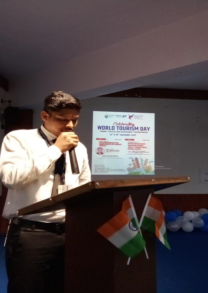 Students showcased their creativity and innovation through posters, rangoli designs, and speeches that highlighted how tourism can act as a powerful catalyst for environmental responsibility, cultural preservation, and sustainable development.