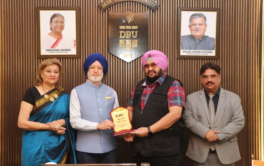 Desh Bhagat University (DBU), Mandi Gobindgarh, achieved a significant milestone by hosting its 1st DBU Model United Nations (DBU MUN 2025) on November 10, 2025, in collaboration with the Panjab Diplomatic Forum. The event marked a new benchmark in diplomacy, collaboration, and global engagement. The prestigious gathering was graced by Hon’ble Chancellor Dr. Zora Singh, Hon’ble Pro-Chancellor Dr. Tajinder Kaur, President Dr. Sandeep Singh, and Worthy Vice Chancellor Prof. (Dr.) Harsh Sadawarti, along with other senior dignitaries of the university. The occasion was further honoured by Chief Guest Advocate Surinderpal Singh Ahluwalia, Chief Advisor, Crime Information Bureau and Member, FCI, Government of India, and Guest of Honour Mr. Parth Raman, Ambassador, International Human Rights Organization, United Nations, Italy.