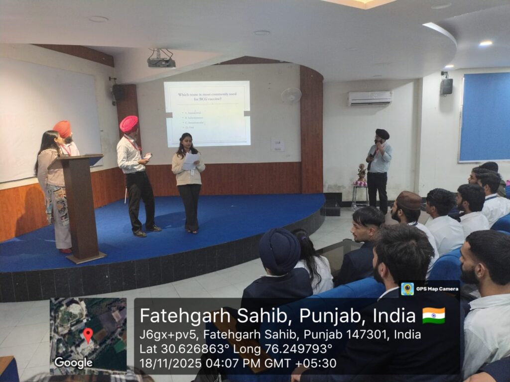 As part of the National Pharmacy Week 2025 celebrations, a Quiz Competition was organized to engage students and promote knowledge in pharmaceutical sciences. The event saw enthusiastic participation from various semesters, with teams showcasing exceptional understanding and quick thinking. The 1st Prize was secured by Harshdeep Singh, Yashasvi, and Ashish Kumar from B. Pharmacy 3rd Semester, who demonstrated outstanding teamwork and subject knowledge. The event successfully fostered academic spirit and raised awareness about the evolving role of pharmacists, reinforcing the theme of this year’s celebration.