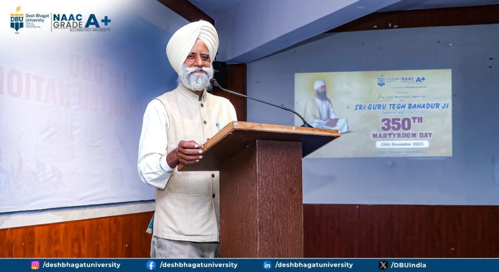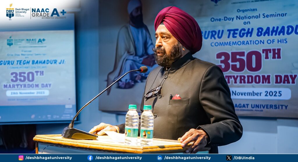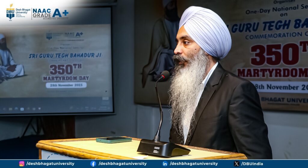 November 29, 2025 2025-11-29 11:31A One-Day National Seminar on Guru Tegh Bahadur Ji was organized at Desh Bhagat University, Mandi Gobindgarh, as part of Punjab Government’s programmes marking the 350th Martyrdom Day of the Guru.