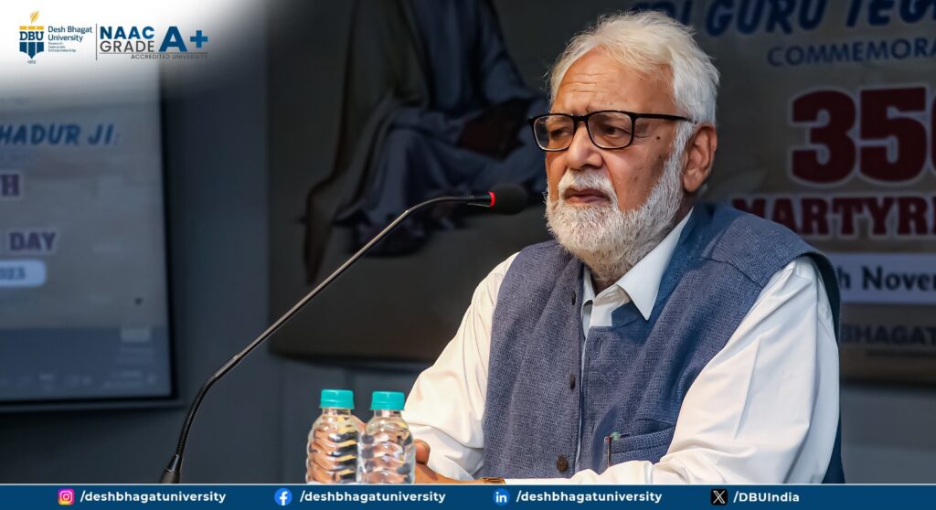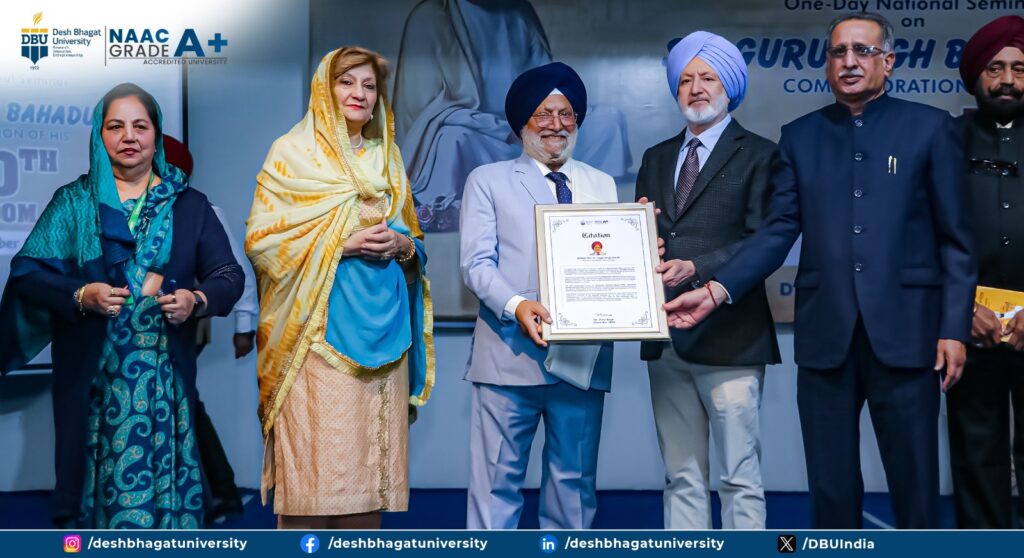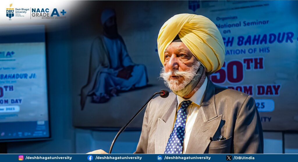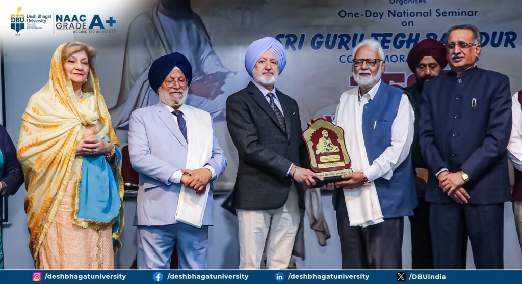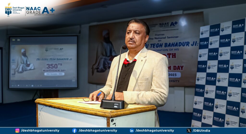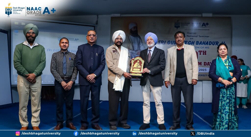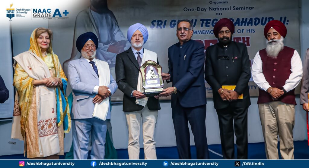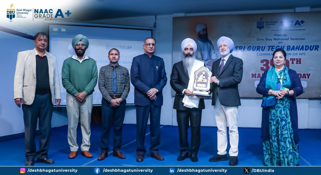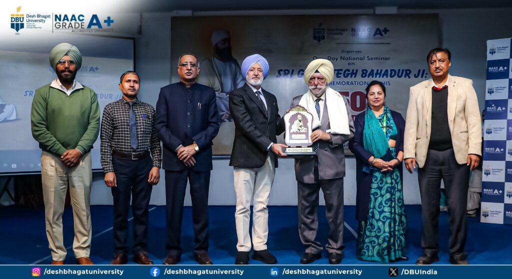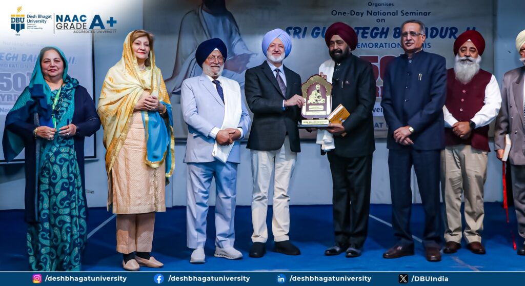 A One-Day National Seminar on Guru Tegh Bahadur Ji was organized at Desh Bhagat University, Mandi Gobindgarh, as part of Punjab Government’s programmes marking the 350th Martyrdom Day of the Guru.