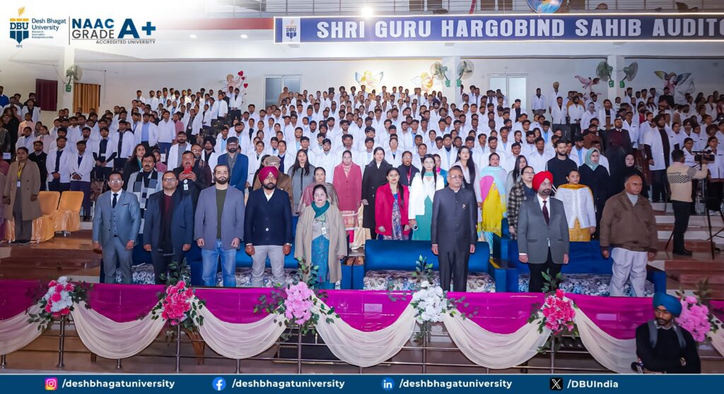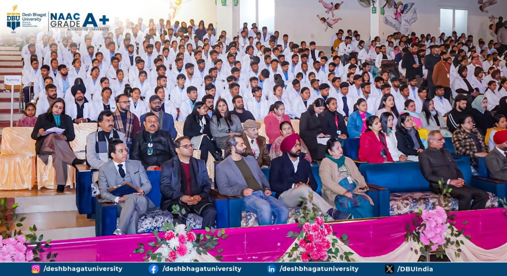 January 8, 2026 2026-01-08 10:44Desh Bhagat University organised the White Coat & Induction Ceremony for the 2025 batch at its Mandi Gobindgarh campus.