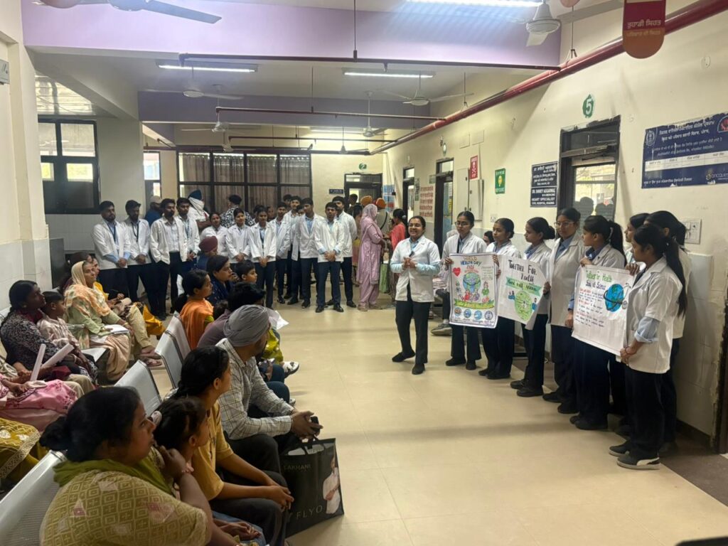 Simultaneously, B.Sc. Nursing 3rd semester students organized health awareness programs at Civil Hospital, Khanna, and Civil Hospital, Fatehgarh Sahib. Through informative health talks and skit performances, they actively educated the public on important health issues in alignment with the World Health Organization theme.